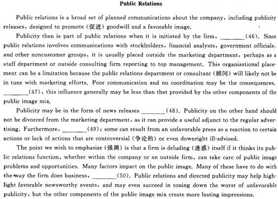 第5部分:補全短文(第46~50題,每題2分,共10分)