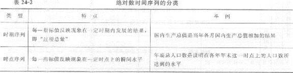 時(shí)間序列按照其構(gòu)成要素中統(tǒng)計(jì)指標(biāo)值的表現(xiàn)形式,分為絕對(duì)數(shù)時(shí)間序列、相對(duì)數(shù)時(shí)間序列和平均數(shù)時(shí)間序列三種類型。