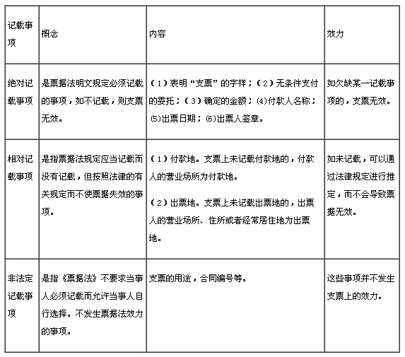 【重點(diǎn)提示】要掌握支票的絕對記載事項(xiàng)和相對記載事項(xiàng)的內(nèi)容,同時要掌握支票的授權(quán)補(bǔ)記事項(xiàng)。