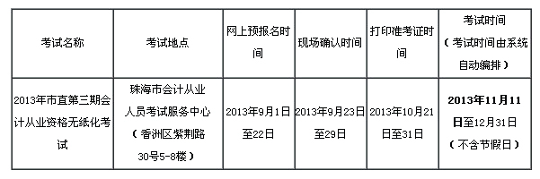 2013年下半年珠海會計從業(yè)資格考試安排表: