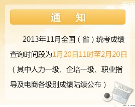 遼寧省2013年11月企業(yè)培訓師全國統(tǒng)考成績查詢通知