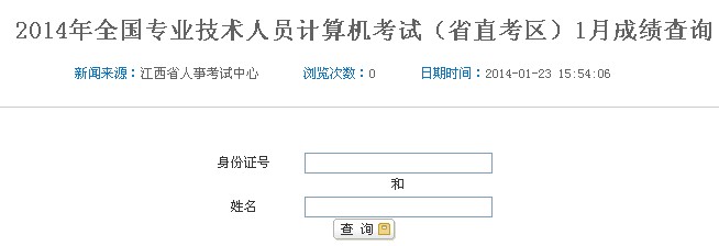 江西2014年1月職稱計算機考試成績查詢入口