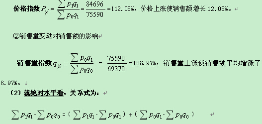 總量差異=價格變動影響額+數(shù)量變動影響額