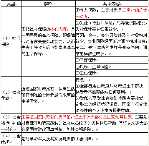 (三)社會(huì)保障制度的類型―4種類型(重點(diǎn)內(nèi)容)