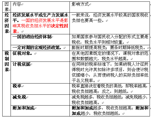 影響稅收負(fù)擔(dān)的因素主要包括經(jīng)濟(jì)因素和稅制因素。