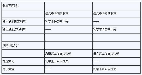 從同時(shí)既是借方又是貸方的借貸雙方組合體(如商業(yè)銀行)來看,其利率風(fēng)險(xiǎn)主要有兩種情形。一是 利率不匹配的組合利率風(fēng)險(xiǎn),二是期限不匹配的組合利率風(fēng)險(xiǎn):