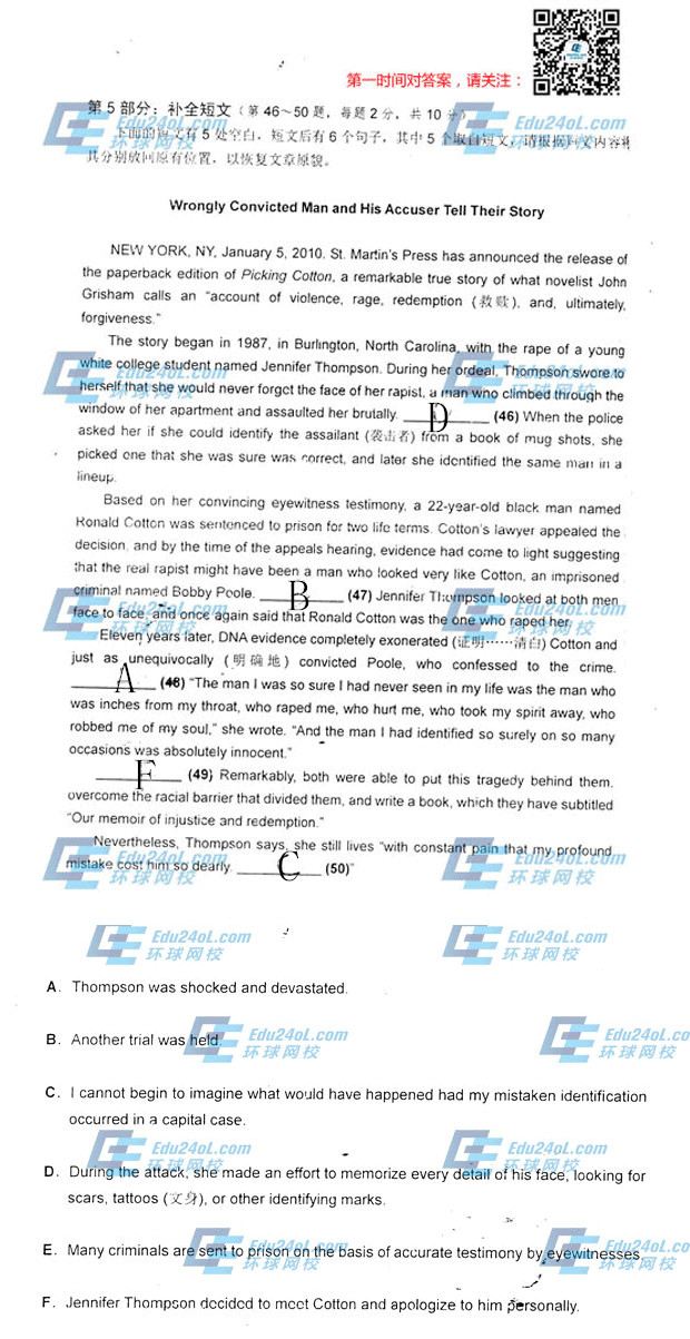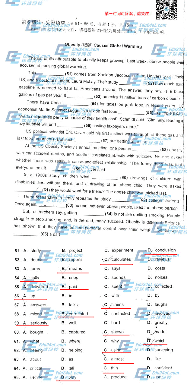 2014職稱英語綜合A真題答案(完整版、代碼13)