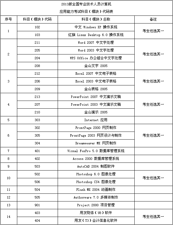 附件:全國(guó)專業(yè)技術(shù)人員計(jì)算機(jī)應(yīng)用能力考試科目(模塊)類別