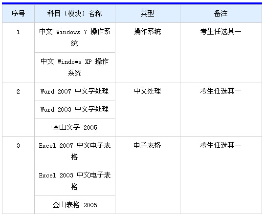 (二)申報評審中級資格的考3科,其中操作系統(tǒng)、中文處理2科為必考科目,第3科在3―13類中自選。