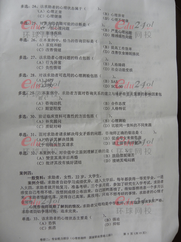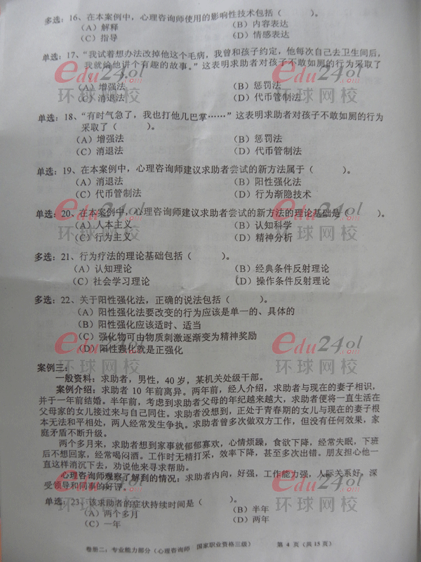 2013年5月心理咨詢師考試三級專業(yè)技能考試已經(jīng)結(jié)束,為了讓考生盡早了解此次考試情況。環(huán)球網(wǎng)校在第一時間為考生及學員整理了真題,近期網(wǎng)校將安排上線,全套真題點評也將于近期安排。請大家隨時關(guān)注!網(wǎng)校預(yù)祝學員們能夠取得好成績。