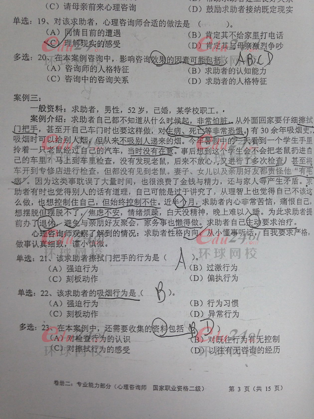 2013年11月心理咨詢師二級專業(yè)技能考試真題