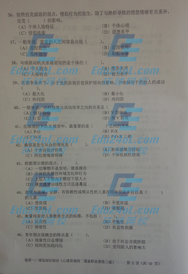 當(dāng)前位置: 首頁(yè) > 心理咨詢師 > 心理咨詢師歷年試題 > 2014年11月二級(jí)心理咨詢師考試?yán)碚撝R(shí)真題