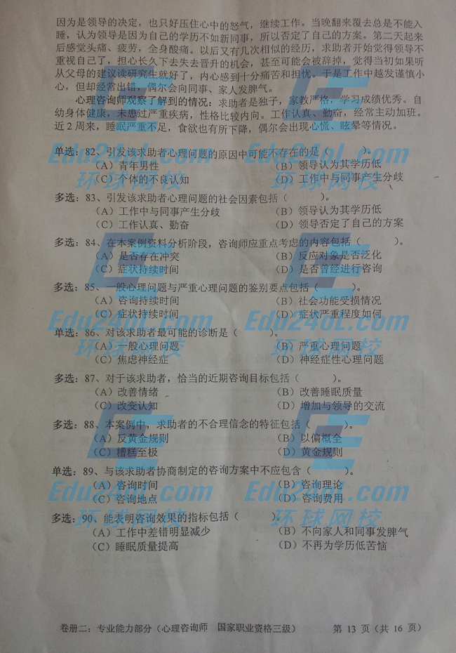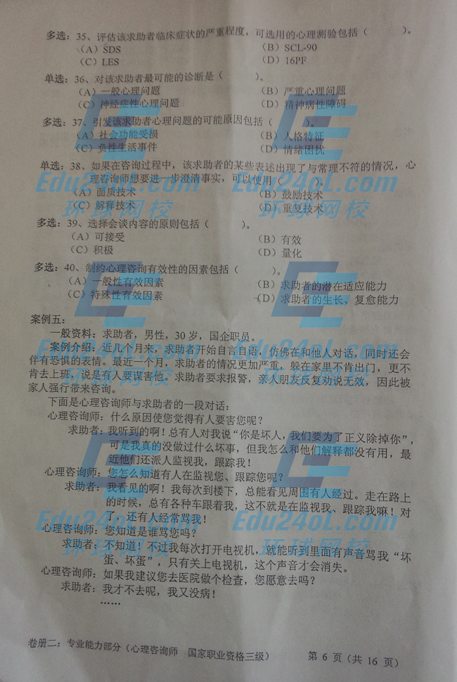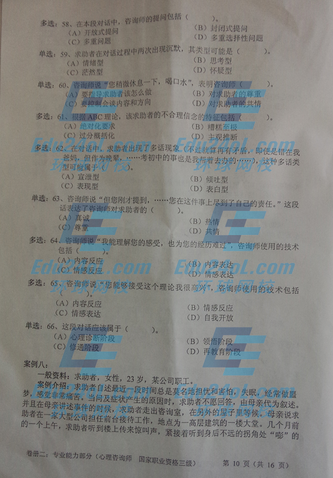 2014年11月三級(jí)心理咨詢(xún)師考試專(zhuān)業(yè)技能真題