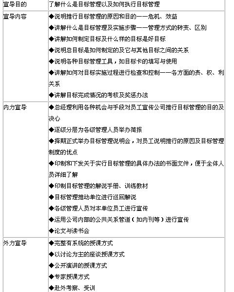 目標管理是一項“老百姓工程”,終究需要實施到每個員工的日常工作中去的,所以非做好細致的宣導工作不可。