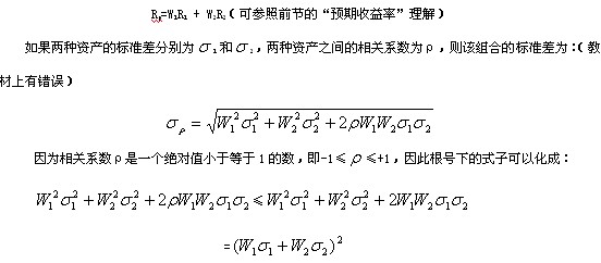 根據(jù)上述公式可得,當兩種資產(chǎn)之間的收益率變化不完全正相關(guān)( <1)時,該資產(chǎn)組合的整體風險小于各項資產(chǎn)風險的加權(quán)之和,揭示了資產(chǎn)組合降低和分散風險的數(shù)量原理。