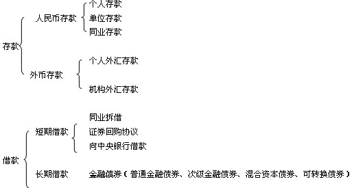 人民幣存款:又分為個(gè)人存款、單位存款和同業(yè)存款,外幣存款又分為個(gè)人外匯存款和機(jī)構(gòu)外匯存款。