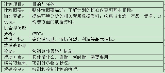 市場(chǎng)營(yíng)銷計(jì)劃的基本內(nèi)容: