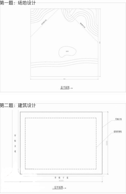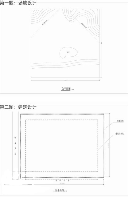 作圖要求:在地形圖(試卷3上)上畫出一層平面(和總圖一起布置);