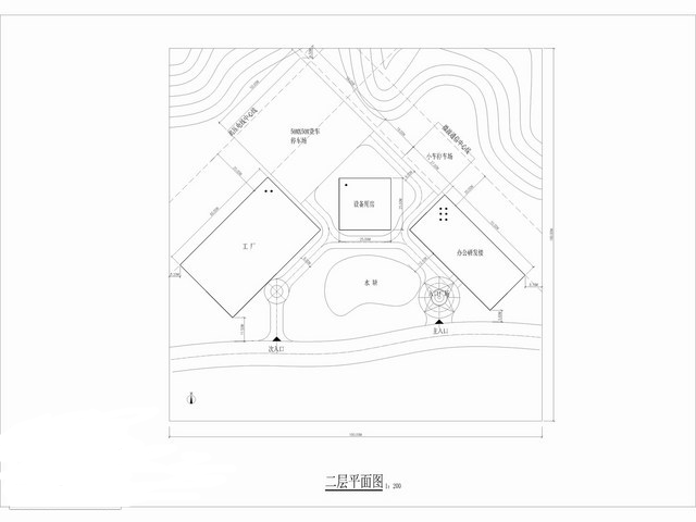一個(gè)60X30M的工廠……和一個(gè)50X50M的貨車停車場以及一個(gè)不少于10輛的小車停車場……要求入口有入口廣場……