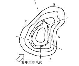 提示:箭頭區(qū)為迎風區(qū);C為順風區(qū);D為高壓風區(qū);B為背風區(qū);A為渦風區(qū)。