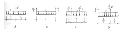 14. 一預(yù)制構(gòu)件單位長(zhǎng)度重量為q,長(zhǎng)度為l,在圖示4種吊裝方式中,哪一種方