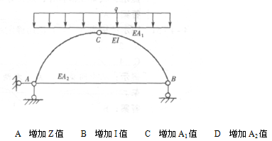 17. 圖示拱具有合理拱軸線,下述哪一種措施對(duì)于減少C點(diǎn)的豎向位移是無(wú)效的?