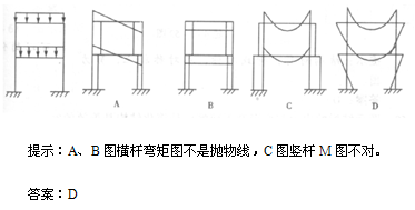 19. 圖示二層框架在垂直均布荷載作用下的各彎矩圖中,圖( )是正確的。