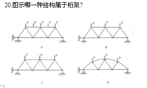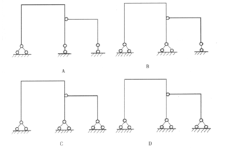 提示: 圖示結(jié)構(gòu)中只有A圖是靜定的。