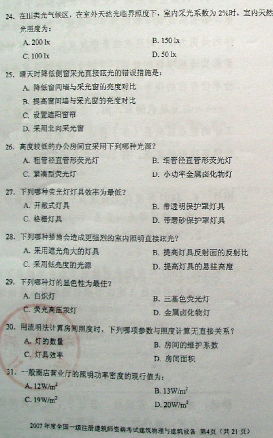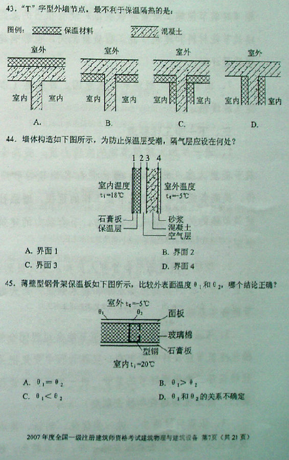 2007一級(jí)建筑師《建筑物理與建筑設(shè)備》真題