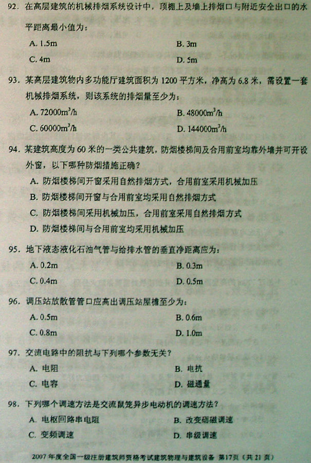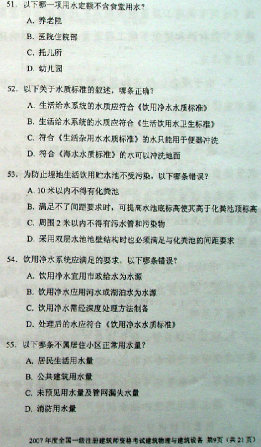 摘要 2007一級(jí)建筑師《建筑物理與建筑設(shè)備》真題,供廣大考友練習(xí)提高。