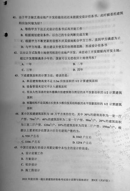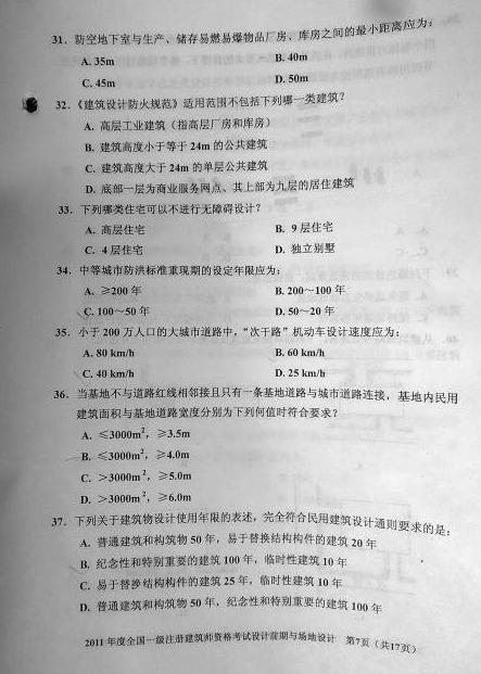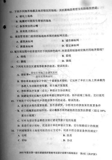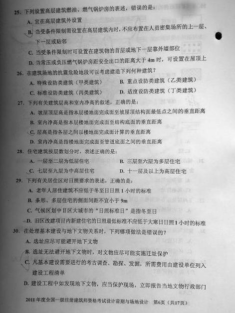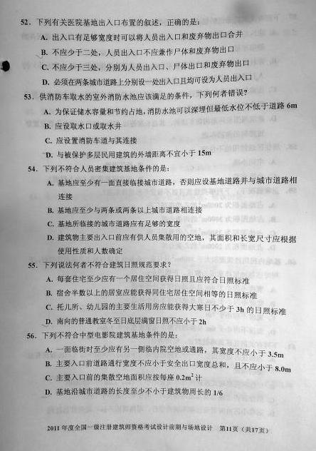 2011一級(jí)建筑師《設(shè)計(jì)前期與場(chǎng)地設(shè)計(jì)》真題
