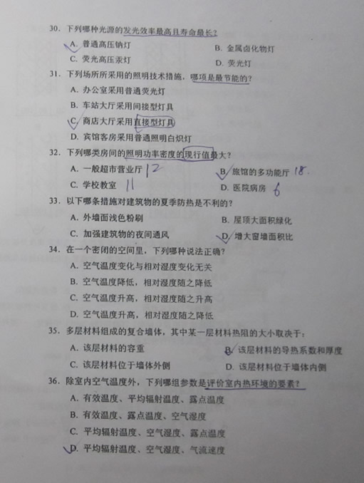 2010年一級建筑師考試《建筑物理與設(shè)備》真題