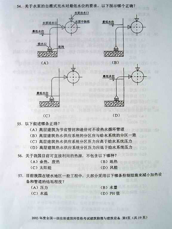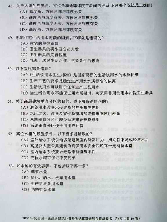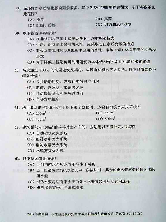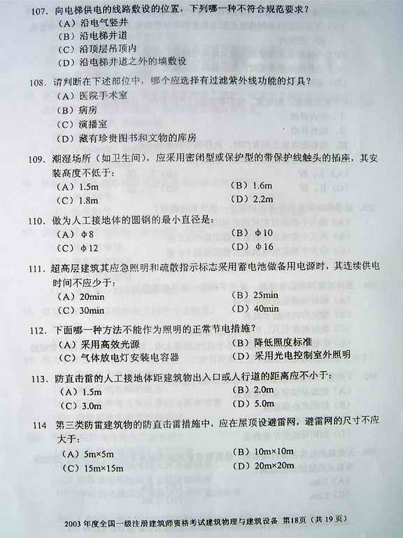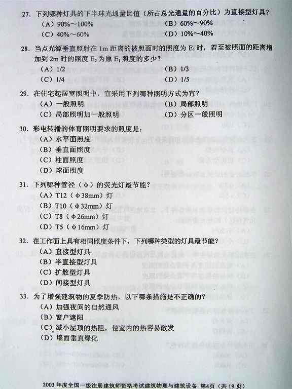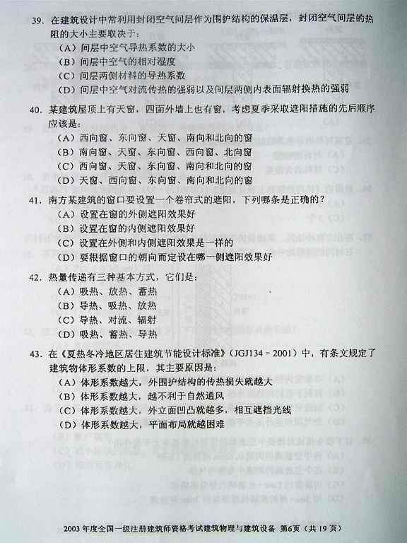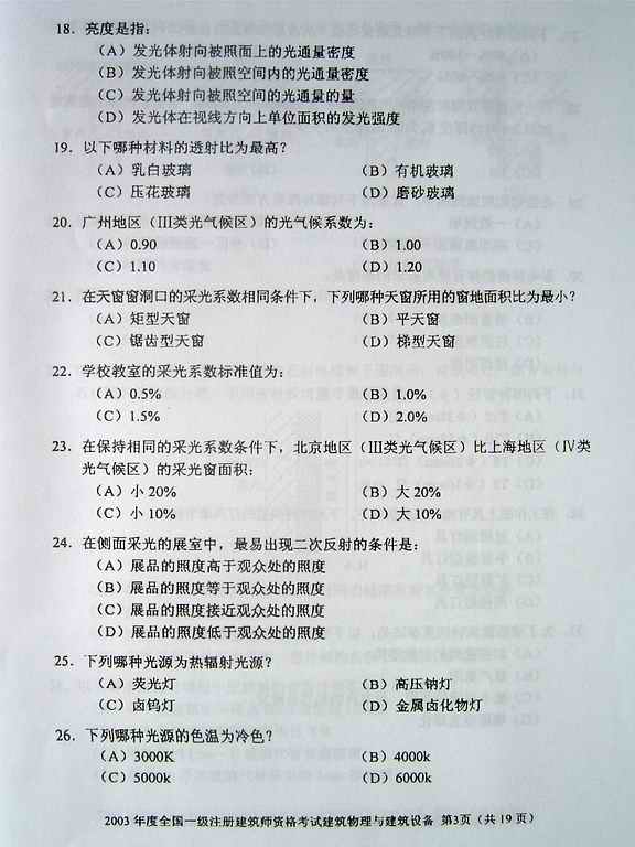 2003年一級建筑師考試《建筑物理與設備》真題