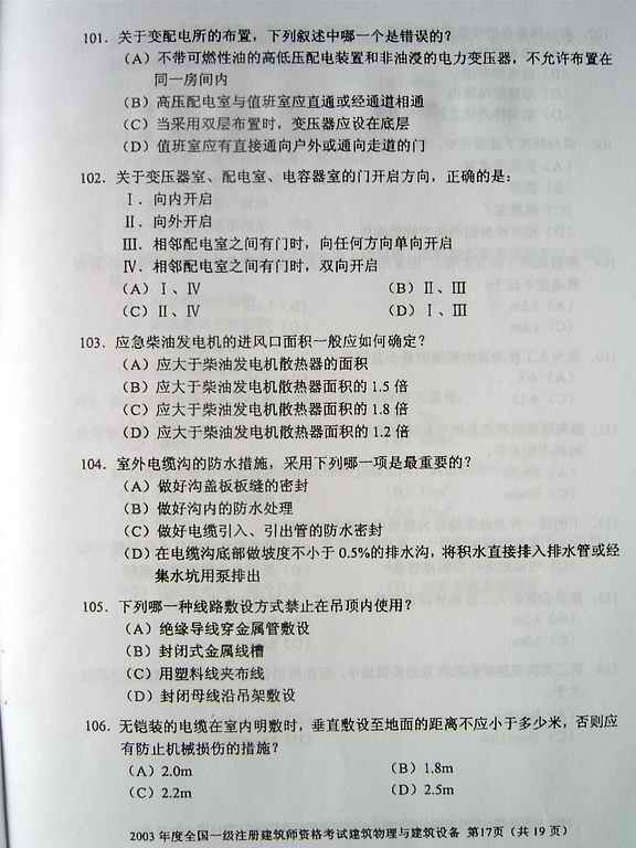 摘要 2003年一級建筑師考試《建筑物理與設備》真題,供廣大考友練習提高。