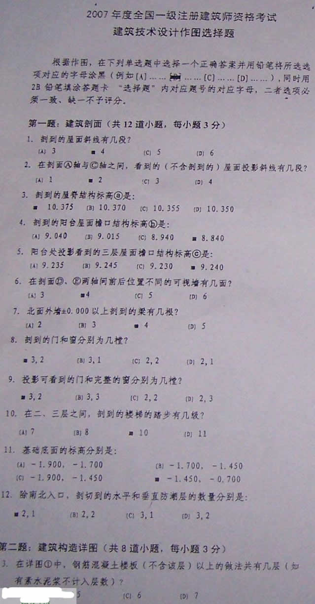 2007年一級(jí)建筑師《建筑技術(shù)設(shè)計(jì)(作圖)》真題