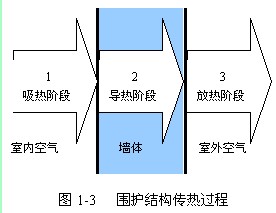 通過(guò)圍護(hù)結(jié)構(gòu)的傳熱要經(jīng)過(guò)三個(gè)階段: