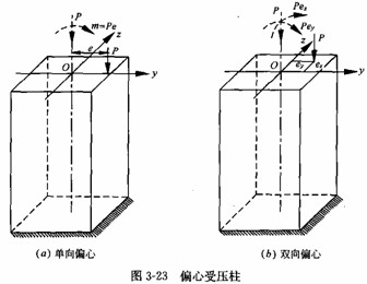 圖 3-23 ( a )所示為單向偏心受壓的情況。此時偏心荷載P作用在截面