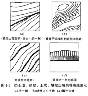 ?、杵渌麕追N地形:擋土墻、峭壁、土坎、填挖邊坡,如圖4―6所示。