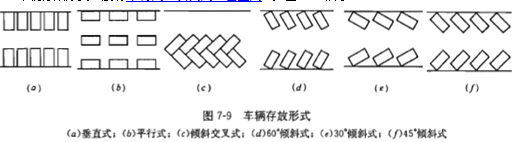 車輛停放形式一般有平行式、斜列式、垂直式,如圖7―9所示。