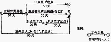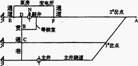 第一個(gè)工作隊(duì):主井至A點(diǎn)(含1、2岔點(diǎn))即①→⑤(1分)。
