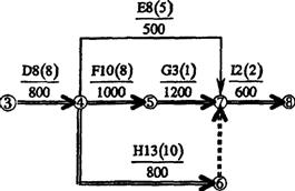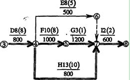 第四步:同時壓縮F工作和H工作l天,增加費(fèi)用l000+800=1800(元)(1分)