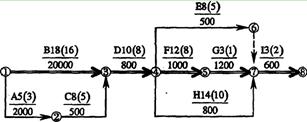 共增加費(fèi)用:600+1600+1000+1800=5000(元)(1分)最終壓縮后的網(wǎng)絡(luò)圖如下:(2分)
