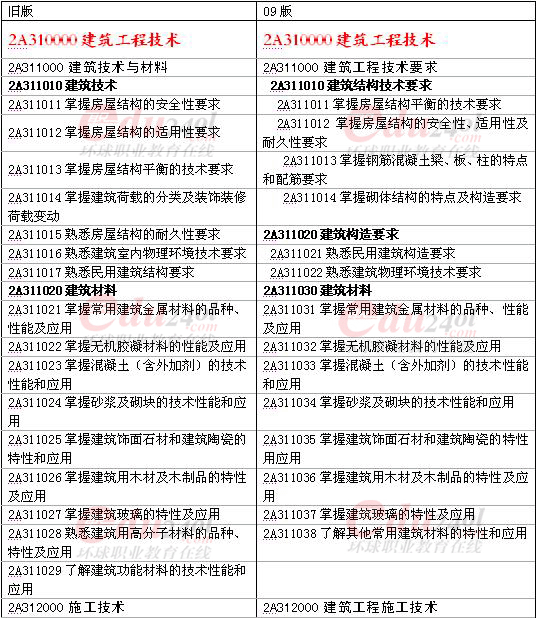 與08版相比,09版《建設工程法規(guī)及相關知識》的變化包括: