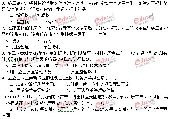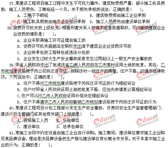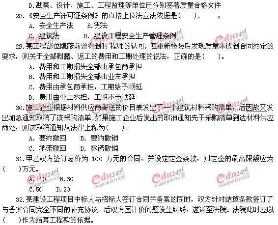2011年一級建造師建設工程法規(guī)及相關(guān)知識考試真題(網(wǎng)絡整理)