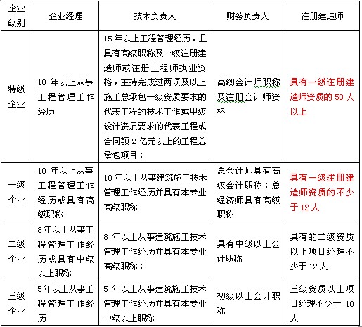以房屋建筑工程施工總承包企業(yè)為例,按照《建筑業(yè)企業(yè)資質(zhì)等級標準》、《施工總承包企業(yè)特級資質(zhì)標準》的規(guī)定: