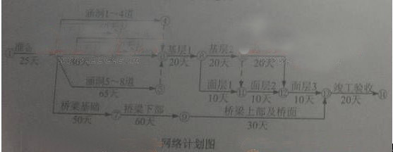 3.為滿足合同工期要求,路基填筑施工最多不能超過多少天?若以橋梁施工為關(guān)鍵線路,路基填筑施工最多不能超過多少天?