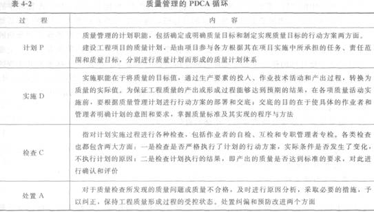 質(zhì)量管理的PDCA循環(huán)見表4-2。