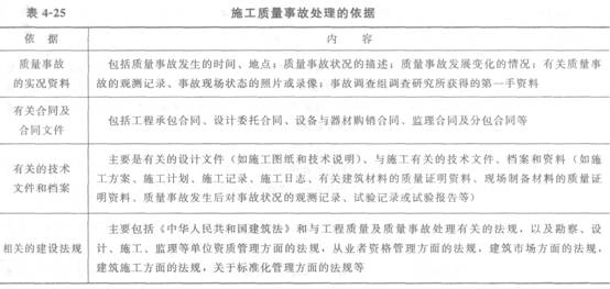 施工質(zhì)量事故處理的依據(jù)見表4―25。