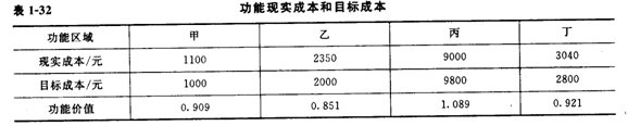4)計(jì)算功能價(jià)值V,分析成本功能的合理匹配程度。