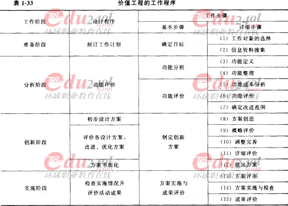 價(jià)值工程的工作程序見表1-31。